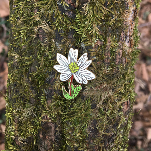 This pin is created with a hard enamel finish with gold metal plated details. Pin has two backings with rubber pin backings for an extra secure hold.